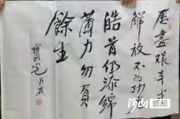 “前方榮光萬(wan) 丈,身後溫暖一方。”正如她“寶光”的名字一樣,李寶光奉獻青春,參加、探索、追求的婦女解放事業(ye) ,給無數在黑暗中掙紮的晉察冀婦女帶來了光明、希望和未來。“當年戰地稚女郎,今日斑斑兩(liang) 鬢霜。”70多年過去了,當我們(men) 以老區人民的名義(yi) 前來看望她的時候,她用剛勁書(shu) 法與(yu) 張家口老區的姐妹同胞共勉:“貢獻巾幗力量,創造巾幗業(ye) 績,彰顯巾幗風采。”