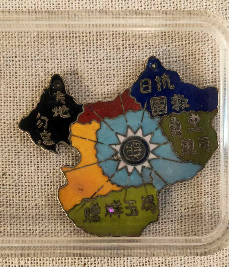 之所以把中國疆域版圖反過來,意在告訴她的佩戴者和全體(ti) 將士:中國的國土被侵略者踐踏,是中國軍(jun) 人的恥辱!馮(feng) 玉祥將軍(jun) 以此來激勵廣大將士,勿忘國恥,積極抗戰,直到將日本侵略者趕出中國,才可以將紀念章反過來,以正麵的祖國版圖示人和佩戴。