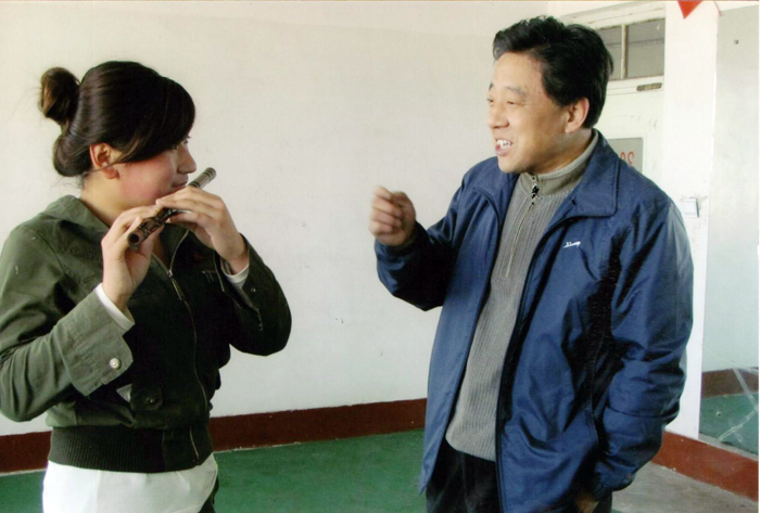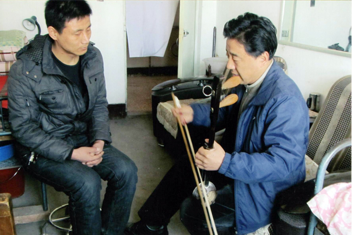 邸曉平,男,1963年出生於(yu) 河北省蔚縣西合營鎮夏源村。1973年4月考入蔚縣晉劇團(蔚縣秧歌劇團)培訓班,學習(xi) 器樂(le) 演奏,主攻小提琴專(zhuan) 業(ye) 。從(cong) 1974年下半年起開始隨團實習(xi) 演出,擔任劇團晉劇、蔚縣秧歌劇現代戲的伴奏工作。在小提琴教師李佃倉(cang) 的指導下,學會(hui) 了《梁祝》、《新疆之春》、《金色爐台》等獨奏樂(le) 曲。到1978年古裝戲開放後,因工作需要,他開始學習(xi) 並從(cong) 事蔚縣秧歌劇、晉劇的主奏樂(le) 器(板胡等)的演奏,同時,開始了音樂(le) 、唱腔的設計與(yu) 創作工作。為(wei) 了切實掌握蔚縣秧歌劇音樂(le) 、唱腔的特點,不斷向已退休的蔚縣秧歌老藝人安生玉、徐才、喇蕊、張洪魁等老師學習(xi) 請教,整理和掌握了大量蔚縣秧歌音樂(le) 、唱腔的資料和演奏技巧、演奏知識。在團內(nei) 工作期間虛心向師傅張啟維、李佃倉(cang) 及潘敬錄、韓仲寶、範品生等老師學習(xi) 請教,利用業(ye) 餘(yu) 時間認真學習(xi) 了戲劇史、戲劇音樂(le) 學、戲劇美學及北方梆子腔沿流及蔚縣秧歌發展曆史等,特別是注重對蔚縣秧歌音樂(le) 、唱腔的生成與(yu) 發展、本質與(yu) 特色等資料的研習(xi) 。潛心研究傳(chuan) 統蔚縣秧歌劇目中板腔體(ti) 唱腔和訓調唱腔的合理運用,並不斷加以實踐。後又學習(xi) 了樂(le) 隊中的司鼓演奏,被大家親(qin) 切的稱為(wei) “樂(le) 隊文武通”。在40年的專(zhuan) 業(ye) 劇團工作中,培養(yang) 出一大批蔚縣秧歌演員、樂(le) 隊和音樂(le) 、唱腔設計人才,其中劉小花、史富春、魏敏、楊建林、王建有、鄭偉(wei) 等多次榮獲省、市級獎勵,已成為(wei) 蔚縣秧歌藝術的優(you) 秀青年後繼人才。在不斷的演出實踐過程中他不失時機、不斷尋訪民間的蔚縣秧歌劇老藝人學習(xi) ,充實自己的知識和演奏技巧,在繼承中求發展,在發展中重保護。從(cong) 上世紀八十年代至今,在劇團40多台移植、改編、創作劇目中擔任音樂(le) 、唱腔設計。主創的《天女與(yu) 戰神》、《代國情》、《泥河灣》、《剪紙謠》四次榮獲河北省戲劇節音樂(le) 、唱腔設計一等獎。兩(liang) 次榮獲河北省戲劇節優(you) 秀伴奏獎。《趕集》、《七姑八姨回娘家》分獲燕趙群星一、二等獎,《貼窗花》獲“魅力河北”省春節文藝晚會(hui) 三等獎。根據傳(chuan) 統鼓樂(le) 並融合蔚縣秧歌劇、蔚縣高蹺、蔚州道情等打擊樂(le) 譜編配的鼓譜《代王戰鼓》被列入張家口市非物質文化遺產(chan) 項目,並多次獲獎。2003年,改編傳(chuan) 統蔚縣秧歌劇《何文秀算卦》獲得了河北省第七屆戲劇百花獎。2009年為(wei) 參加河北省第八屆戲劇節,創作的蔚縣秧歌劇《剪紙謠》音樂(le) 、唱腔得到了觀眾(zhong) 和省內(nei) 外專(zhuan) 家的廣泛好評和高度讚揚,認為(wei) 該劇唱腔充分體(ti) 現出了蔚縣秧歌劇的特色,並在嚴(yan) 格繼承的基礎上有所創新,使蔚縣秧歌唱腔的韻律更加豐(feng) 富、優(you) 美。2010至2011年,在蔚縣舉(ju) 辦的中國剪紙藝術節開幕式大型演出中,他承擔了全部音樂(le) 的創作,並很好的把蔚縣秧歌的音樂(le) 、唱腔演化為(wei) 整場演出的主基調,受到了國家級專(zhuan) 家的高度讚揚。1990年,他被吸收為(wei) 河北省劇協會(hui) 員。2006年起擔任蔚縣晉劇團(蔚縣秧歌劇團)副團長,音樂(le) 唱腔設計。由於(yu) 時代的發展,蔚縣秧歌老藝人在逐年減少,目前和今後一段時期,他的肩上擔負著專(zhuan) 業(ye) 從(cong) 事蔚縣秧歌劇音樂(le) 、唱腔的傳(chuan) 承與(yu) 保護之重擔。