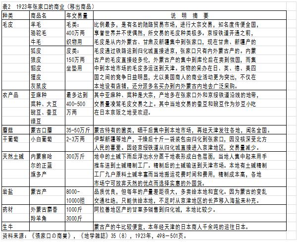 資料來源:①《張家口の商業(ye) 》,《地學雜誌》35(8)1923年,498-503頁。
