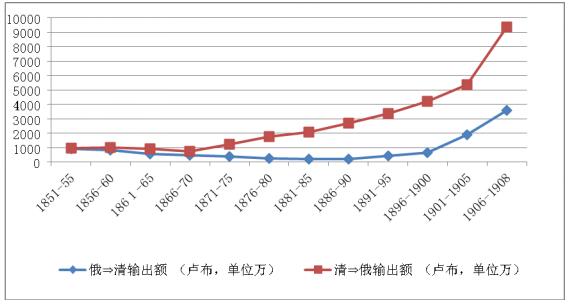 附圖 1851-1908清俄貿易輸出額(5年平均值)