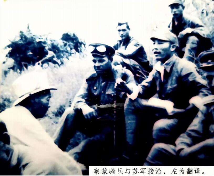 蘇蒙聯軍(jun) 3西路總隊8月11日進入中國二連浩特,然後兵分兩(liang) 路,一路取道滂江進占德化,14日晚進入張北縣城;一路經蘇尼特右旗南下,經商都亦到達張北縣城。16日晚察蒙支隊報告,他們(men) 於(yu) 15日在察哈爾盟首府張北縣城外遇到蘇蒙聯軍(jun) ,聯軍(jun) 對這支衣冠不整、武器長短不齊的部隊產(chan) 生嚴(yan) 重懷疑,不許我軍(jun) 進城,命我以班為(wei) 單位,把槍架起來,馬拴到另一邊,統由聯軍(jun) 看管。經副政委兼察北辦事處主任柴書(shu) 林和副支隊長吳廣義(yi) 反複交涉,“城防司令”(上校)才將他們(men) 帶到公會(hui) 鎮,路過白城子即元中都遺址,引至一處野外帳篷,見到一中將銜者(疑係紮哈4羅夫),柴、吳向他敬禮同時喊了一聲“達瓦列士”(同誌),中將也回了一聲“達瓦列士”並緊緊握手。中午以野餐招待,隨即商妥分別向各自上級匯報,如無誤,明天中午將縣城交付我方管理。雖然雙方語言不通,但非常友好,尤其愛與(yu) 我軍(jun) 小戰士嬉笑打鬧。蘇軍(jun) 戰士伸出大拇指說“斯大林”,我們(men) 則說“毛澤東(dong) ”,分手時互相擁抱、握手、親(qin) 吻,更是親(qin) 切。兩(liang) 軍(jun) 會(hui) 師的這一天,日本天皇通過廣播宣讀了《終戰詔書(shu) 》,隨即日本內(nei) 閣正式宣布無條件投降。16日中午,蘇5遵約派一上校與(yu) 我方會(hui) 談,承認我為(wei) 八路軍(jun) ,將城內(nei) 日偽(wei) 軍(jun) 的倉(cang) 儲(chu) 物資、武器彈藥全部移交我們(men) ,防務仍由蘇軍(jun) 負責。
