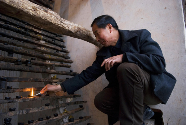 拜燈山這一古老民俗活動之所以能繼承並發展到今天,憑的是康春對民間文化的摯愛和執著。燈山的燈火燃料是麻油,而近年麻油摻假十分厲害,影響了燈光效果,為(wei) 此他四處奔波尋訪好麻油。2002年春節,康春山上種胡麻的親(qin) 戚送給他家10斤純胡麻油,妻子高興(xing) 地心裏說這下可以吃上好油了,可第二天妻子炒菜時卻找不到那桶油,問康春才知道讓他拿到燈山樓變成了燈山的燃料。妻子為(wei) 此又氣又惱,可康春卻說:“好油吃了香咱一家,點燈山亮的是全村。再說我也是試驗,好了讓咱親(qin) 戚專(zhuan) 門供應拜燈山的麻油。正是這種執著,使康春把拜燈山民俗社火完整地傳(chuan) 承下來,並創作了“五穀豐(feng) 登”、“四季平安”、 “年年吉祥”等多個(ge) 作品,讓成千上萬(wan) 的人欣賞到了這一獨具魅力的民俗文化,為(wei) 民間技藝的傳(chuan) 承做出了重要貢獻,曾受到全國政協常委馮(feng) 驥才、河北省民間文藝家協會(hui) 主席鄭一民等專(zhuan) 家學者的讚譽。