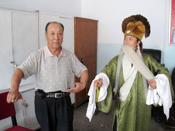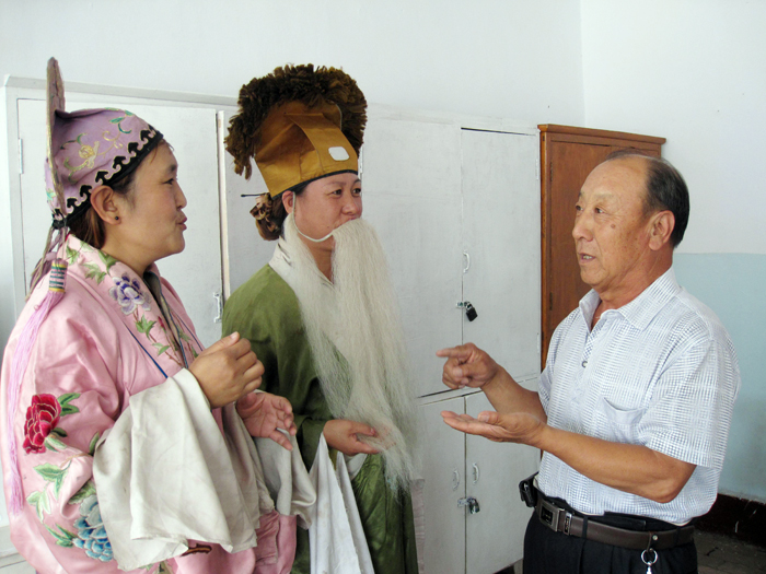 劉義(yi) 旭,現年67 歲,河北省蔚縣南留莊鎮曹疃村人。自小喜愛戲劇,對村裏的秧歌戲更是喜愛有加,並有較強的組織能力。多年來,他一直為(wei) 村裏的秧歌戲跑前跑後,雖然是義(yi) 務,但他沒有任何的怨言,家人也很支持他。無論是劇團演出,還是聯係相關(guan) 業(ye) 務,到處都有他的身影。由於(yu) 他對村劇團工作的執著,2006年,村裏決(jue) 定讓他擔任村秧歌劇團團長。他自當上團長後,更把全部的精力用在了村裏的秧歌戲上,認真研究村裏秧歌戲的傳(chuan) 承與(yu) 發展,主動走出去同縣文化館、縣劇團及一些戲曲專(zhuan) 家探討表演技藝,並聘請專(zhuan) 業(ye) 演藝人士到村指導表演要領和技巧,規範表演的每個(ge) 動作。無論是唱腔,還是表演的板式變化都得到了很好的校正。對團裏的每位演員,他都嚴(yan) 要求,細管理,打造出了一支素質高、表演能力強的演出隊伍。他通過多方聯係和邀請,2013年4月16日,省文化廳的相關(guan) 同誌還專(zhuan) 門到村觀看了他們(men) 的秧歌戲表演,並給予了很高的評價(jia) 。