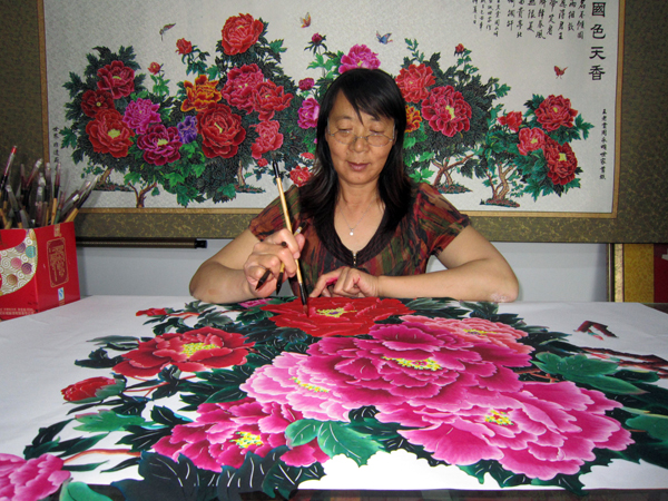 周淑清,1960年出生於(yu) 河北省蔚縣南張莊村,是第二代剪紙藝術大師周永明的長女。繼中國剪紙藝術大師王老賞、周永明之後的第三代世界級非物質文化遺產(chan) 蔚縣剪紙的傳(chuan) 承人。她自幼隨父親(qin) 周永明學習(xi) 染色技法,18歲全部掌握了刻、畫、染的全套剪紙技法。多年來,她一直致力於(yu) 剪紙藝術的創作和實踐,在師承王老賞、周永明的的技藝基礎之上,不斷進行大膽的藝術創新。在點染技法上更是獨樹一幟,開創了“鋪蓋法、霧染法、潑墨法”等7種全新的染法,從(cong) 而增強了剪紙的藝術魅力,形成了自己獨特的藝術風格。剪紙藝術題材豐(feng) 富、故事語言鮮明、構圖豐(feng) 滿、構思巧妙、大氣靈動、充滿神韻。如:作品《牡丹圖》就是用上述幾種染法完成的,這些技法使其神采飛揚、富有動感,後被相關(guan) 領導和專(zhuan) 家教授收藏。
