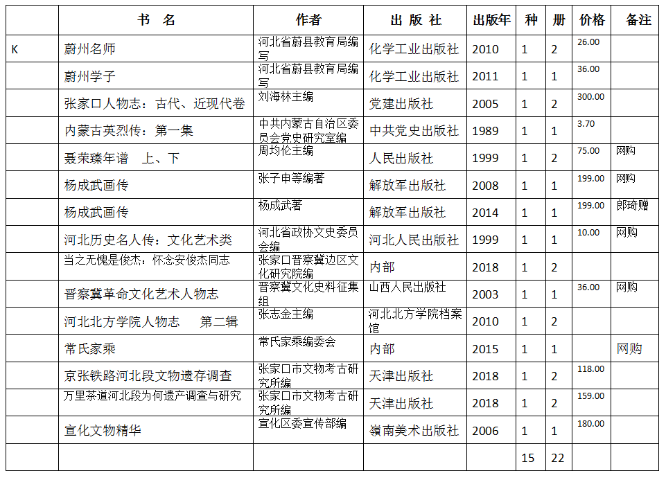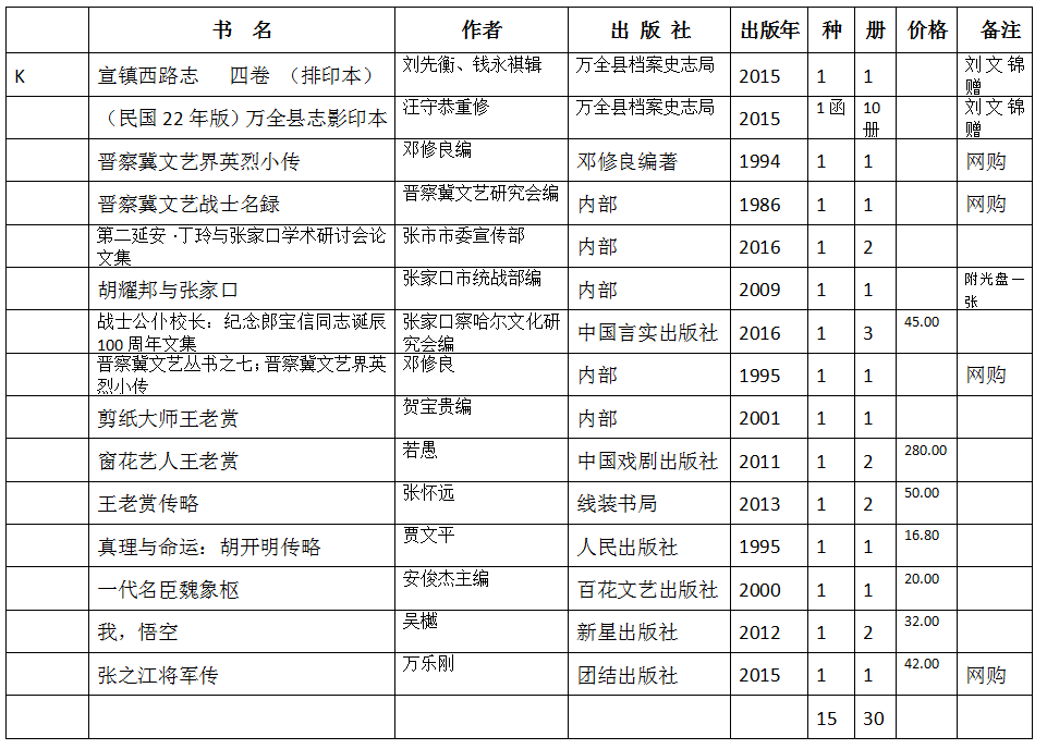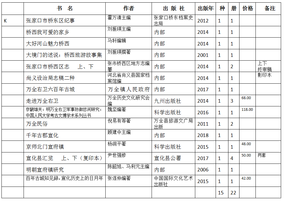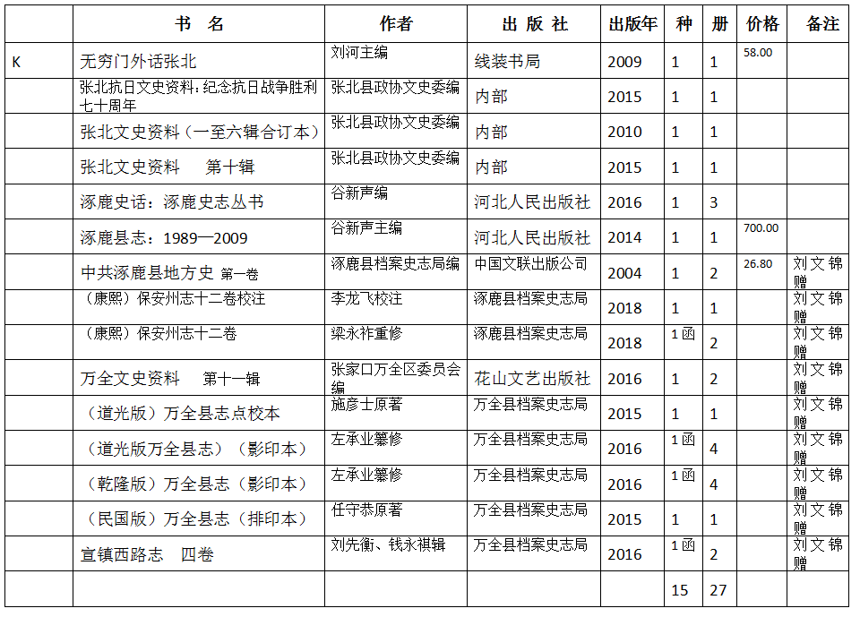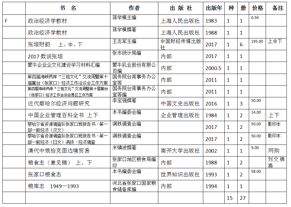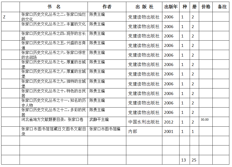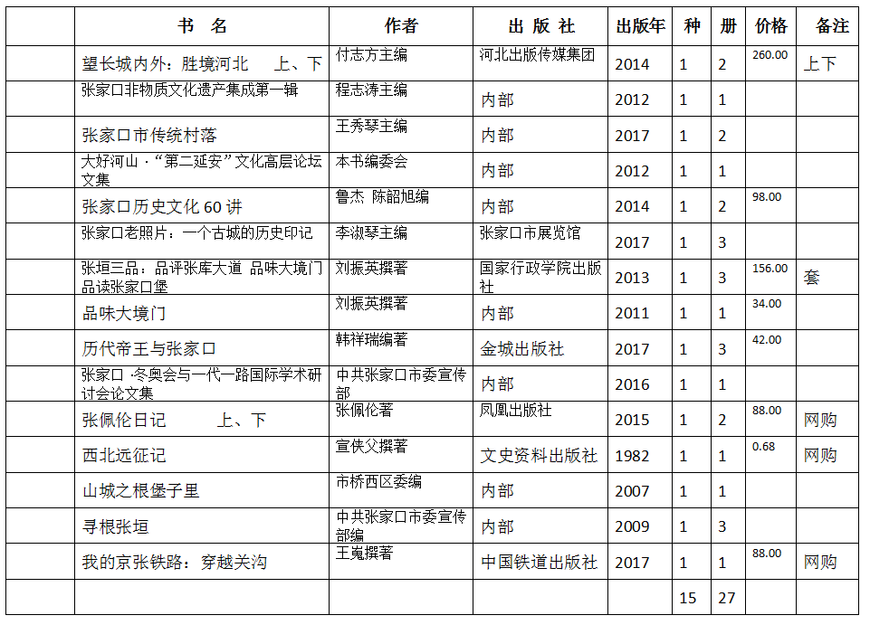 張家口米兰足球国际俱乐部官网特藏檔案目錄