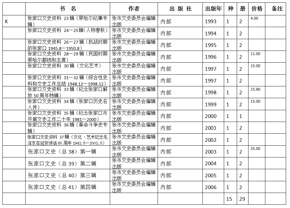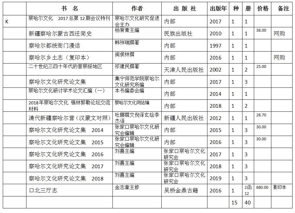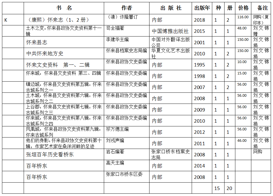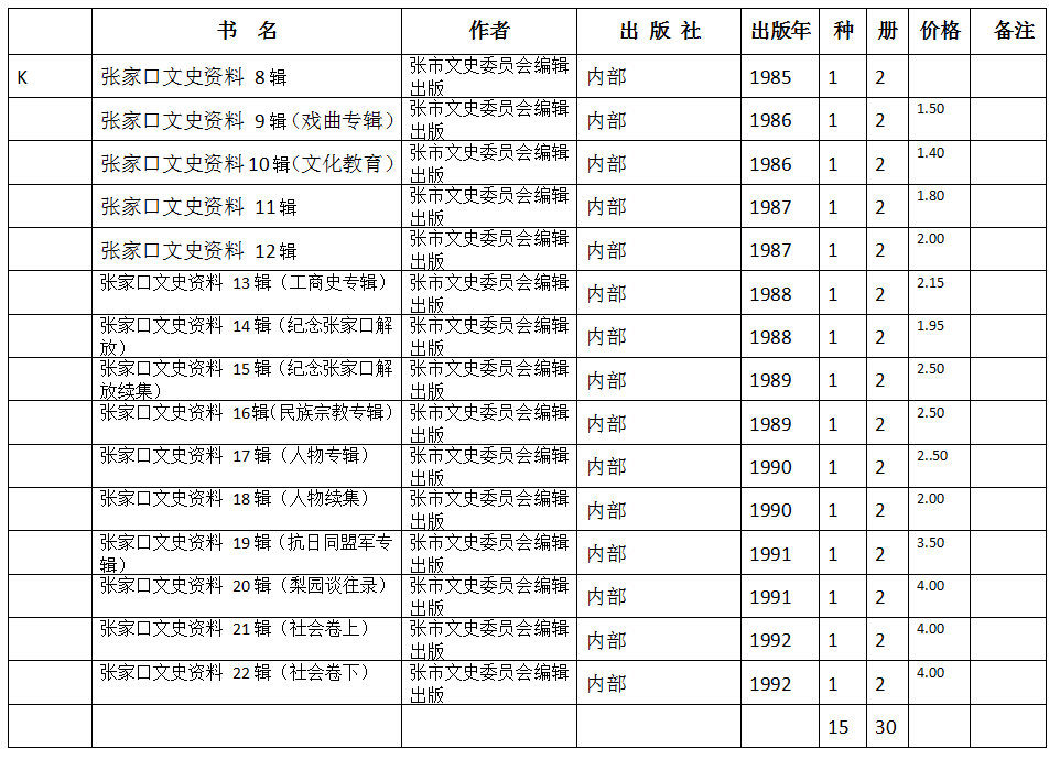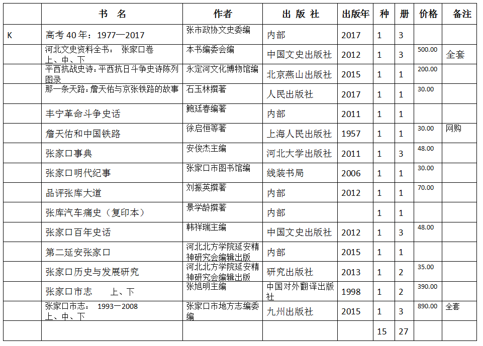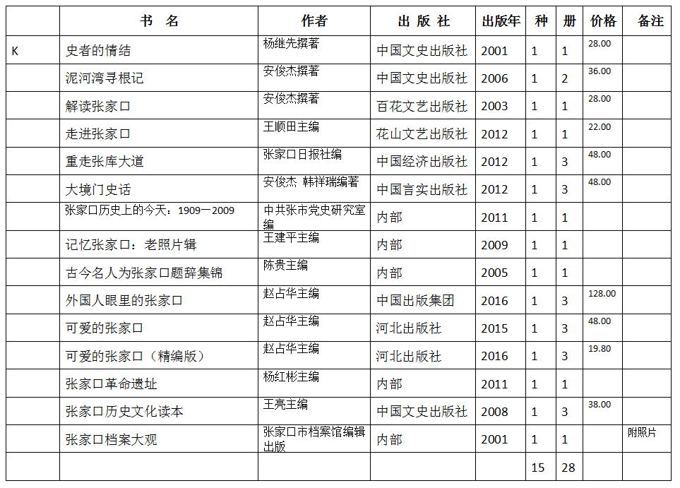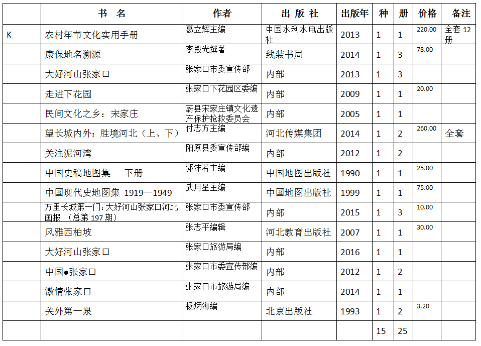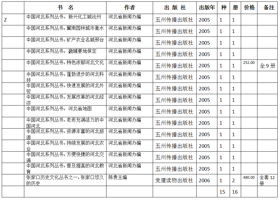 張家口米兰足球国际俱乐部官网特藏檔案目錄